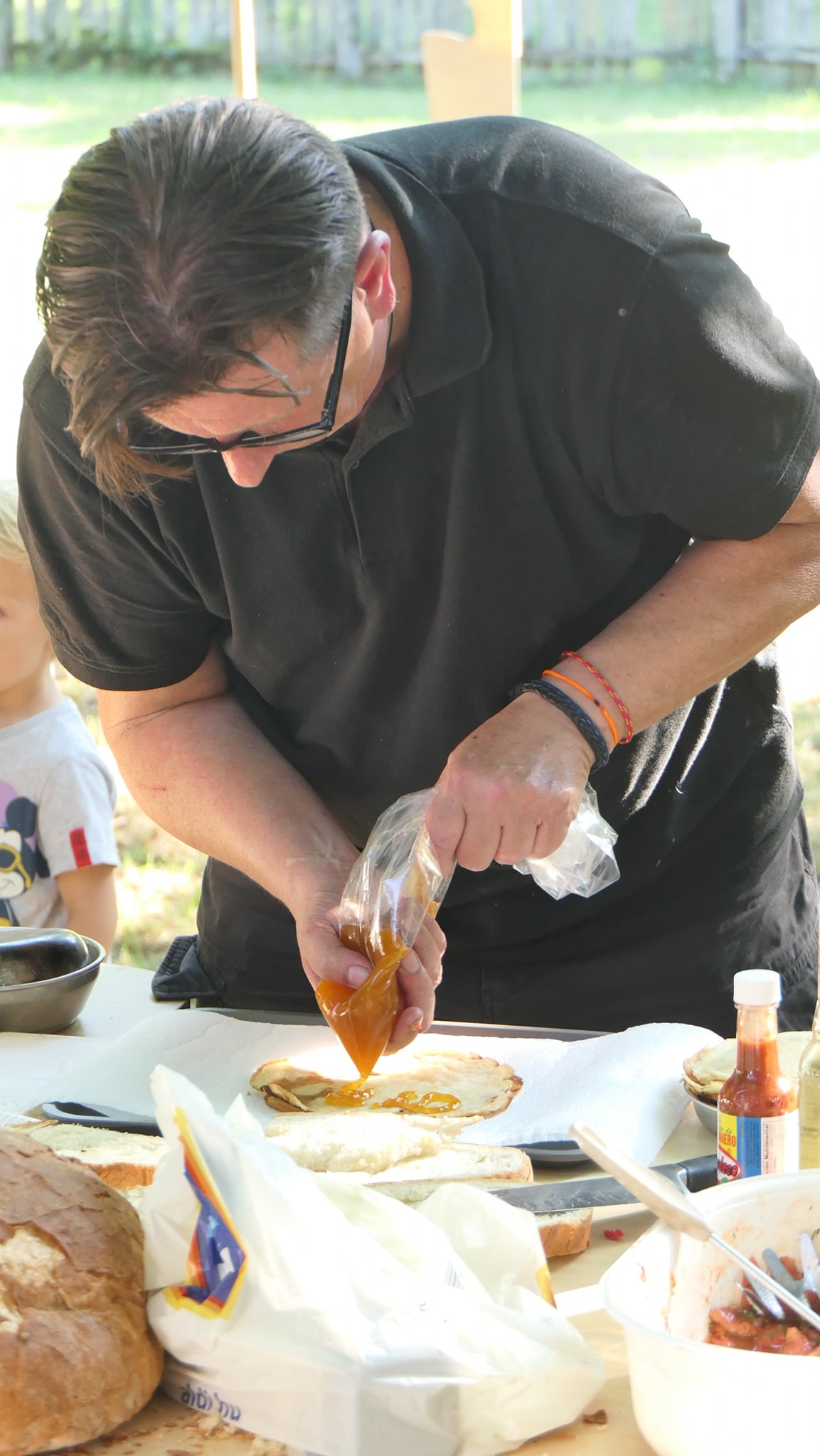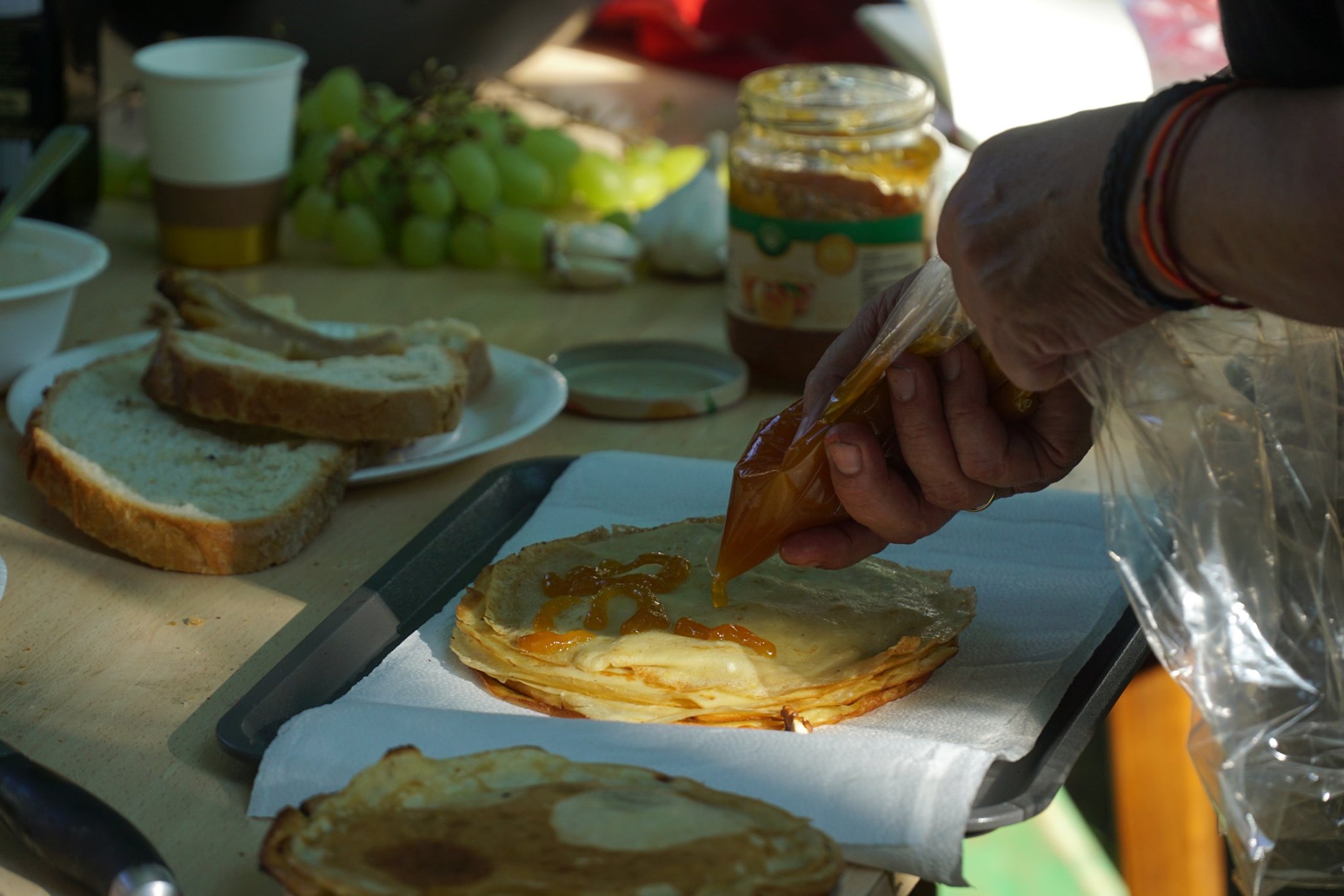 Tetejét még megkeni lekvárral és felkínálja a többieknek.