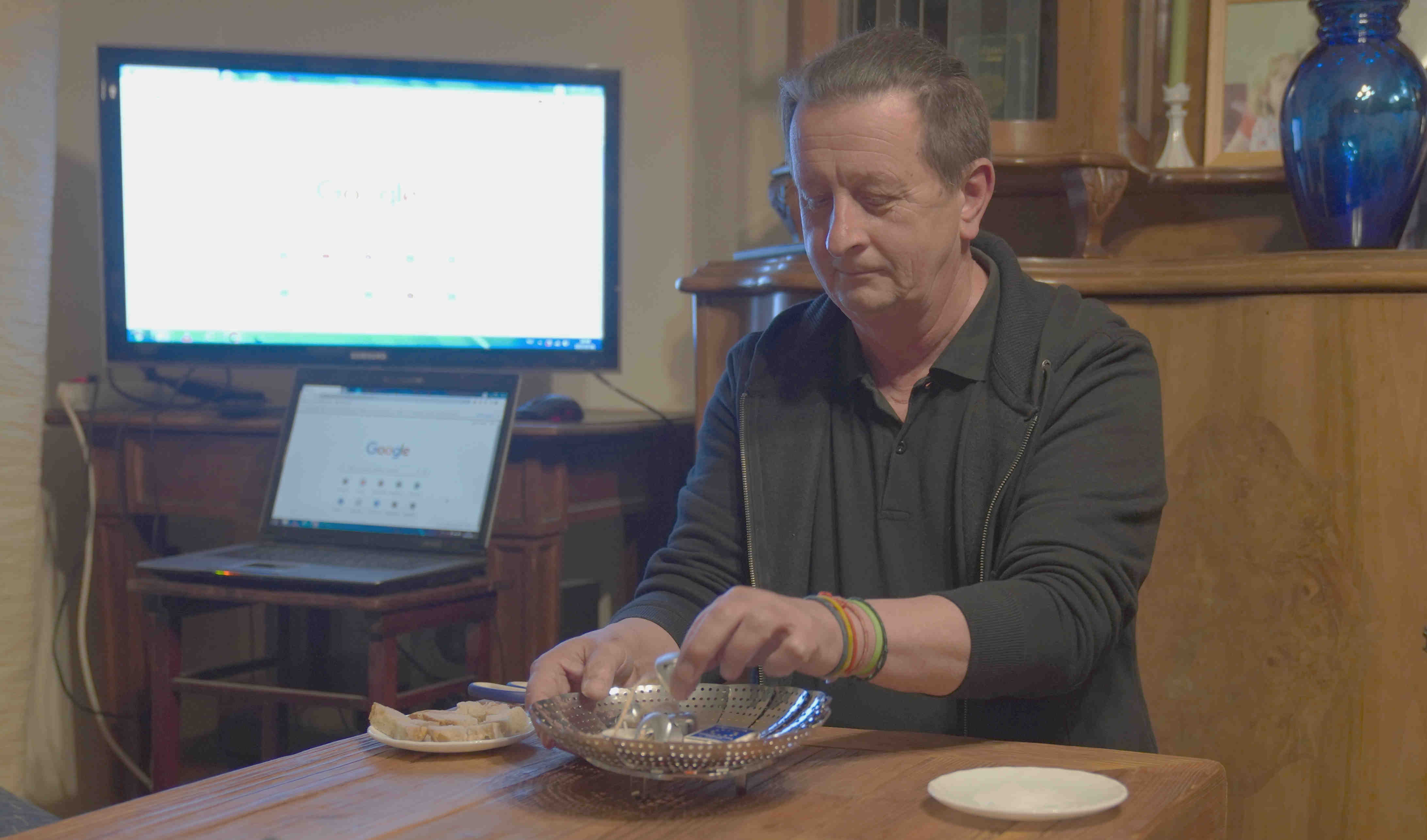 Némi előkészület után (gyümölcstartó lassú virágszerű kinyitása, benne mécsesgyújtás) kis tányérra több kenyérdarabot és kevés sót tett.
